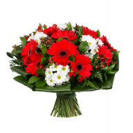 Композиция из гербер и хризантем придется по вкусу всем, ведь букет – это сочетание двух красивых цветов: красного и белого. Гиперикум придаст колоритности и особенности цветам, сделает подарок незабываемым. Композиция идеально подойдет, чтобы обрадовать коллег или друзей, повод не имеет значения, ведь классика уместна всегда и везде.